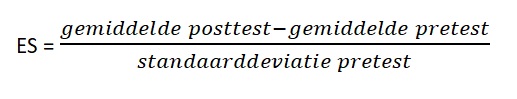 Het effect kan worden berekend door het verschil of verandering van de gemiddelde score te delen door de standaarddeviatie van de eerste meting of pretest.